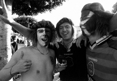 Durante el mundial de Francia los escoceses que estan de vacaciones en Palma de Mallorca celebran los partidos de su seleccion.